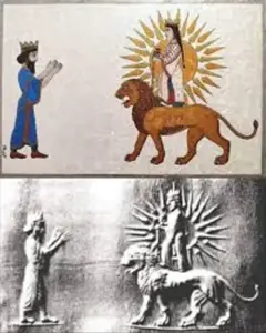 در روزگار باستان، هم خورشید (مظهر خدای مهر) و هم شیر (نشان توان و اقتدار) به‌گونه‌ای با شاهان مرتبط بودند. چنانچه میان‌رودیان، سرآمدان دانش ستاره‌شناسی، طالع شهریاران را در صورت فلکی شیر می‌دیدند.