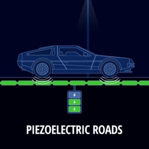 برخلاف جاده های خورشیدی، جاده های پیزوالکتریک به لطف موادی که زیر سطح جاده ترکیب می شوند، انرژی تولید می کنند. در واقع، کریستال های مورد استفاده انرژی منتقله از وزن خودروهای روی سطح جاده را جذب می کنند. برق تولیدی می تواند به شبکه برق محلی هدایت شده یا در سطح جاده و محیط اطراف آن برای تامین نیروی چراغ ها و فناوری های هوشمند استفاده شود.
