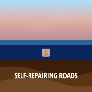 دانشمندان و شهرداری ها در حال آزمایش موادی خودترمیم برای استفاده در سطح آسفالت جاده ها هستند. نمونه های مورد آزمایش در هلند و چین از ترکیبی ویژه استفاده می کنند که هنگام اعلام هشدار توسط یک حسگر بروز آسیب به طور خودکار ذوب و دوباره شکل می گیرد تا آسیب وارده رفع شود. این فناوری می تواند همراه با کریستال های پیزوالکتریک زیر سطح جاده استفاده شود.