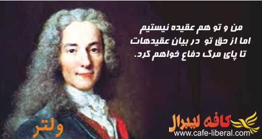 ولتر در جایی می‌گوید که “من و تو هم‌عقیده نیستیم اما از حق تو در بیان عقیده‌ات تا پای مرگ دفاع خواهم کرد.”