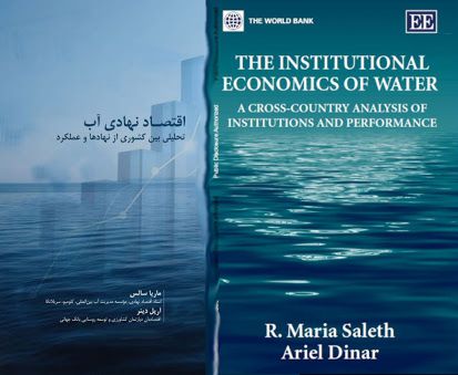 🔸کتاب «اقتصاد نهادی آب(تحلیل مقایسهای پیرامون نهادها و عملکرد کشورها)»(The institutional economics of water: a cross-country analysis of institutions and performance) نوشته ماریا سالس (استاد اقتصاد نهادی، مؤسسه مدیریت آب بینالمللی، کلومبو، سریلانکا) و آریل دینر (اقتصاددان دپارتمان کشاورزی و توسعه روستایی بانک جهانی) در سال ۲۰۰۴ میلادی است که توسط امید صالحی و جواد عربیارمحمدی ترجمه و توسط مرکز بررسیهای استراتژیک ریاستجمهوری در بهار ۱۴۰۰ منتشر شده است.