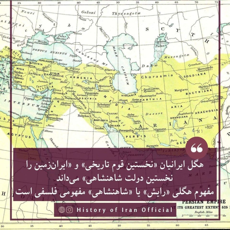 هگل ایرانیان «نخستین قوم تاریخی» و «ایرانزمین را نخستین دولت شاهنشاهی» میداند