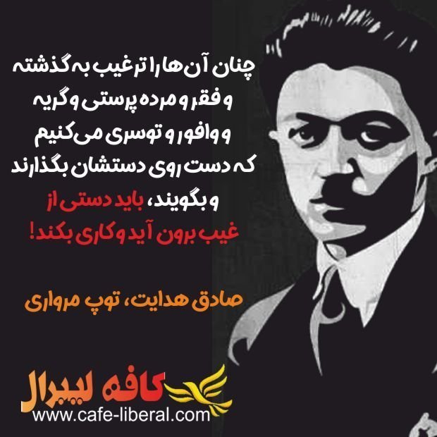 هدایت از هیچ دستگیره ای نمی گذرد: شعر می گوید مثل می سازد گاه قصه های تاریخ را به هم پیوند می دهد و از خود چیزی تازه می آفریند تركی و رشتی می نویسد و جا به جا احادیث و آیه ها را به محك گرفته بطلان آن ها را ثابت می كند و گاه تنها به طنز از آن ها می گذرد. آوای بوف : هدایت دشمن خرافات و عقاید سنگ شده بود. پس از زمان خود زندگی می كرد و بیش از